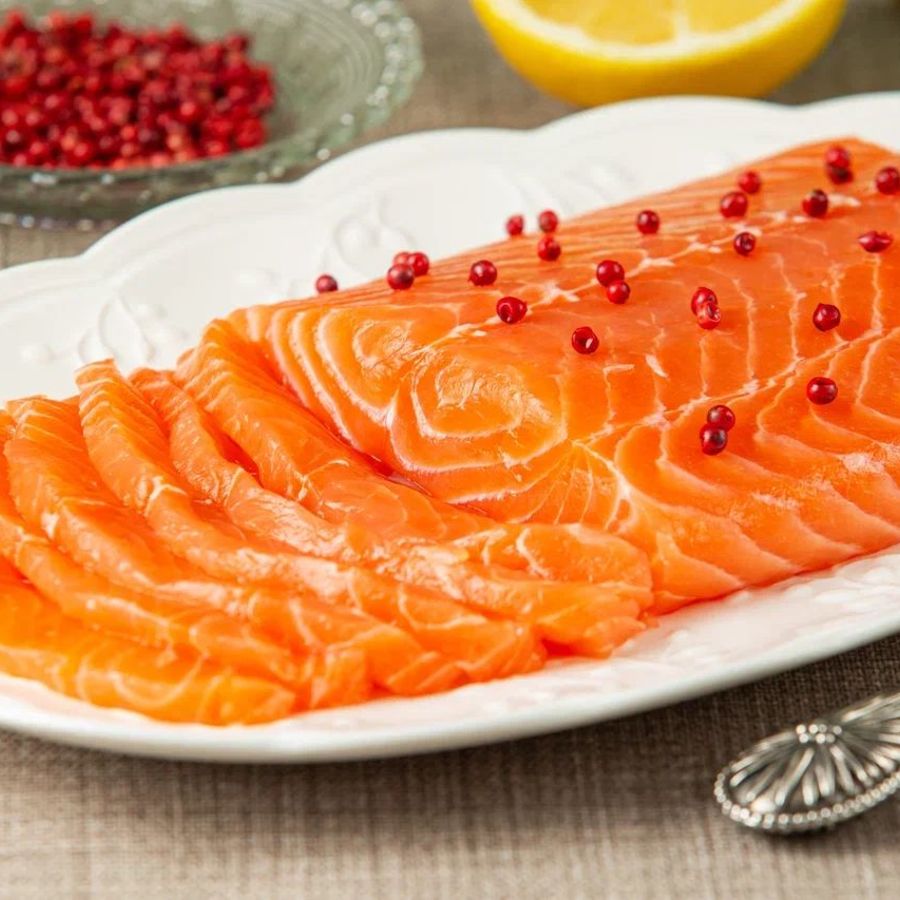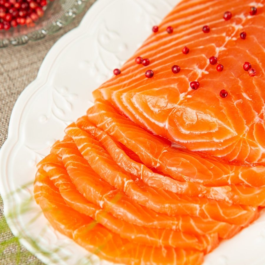 Состав: филе лосося, лимон, соль, сахар, зелень, специи